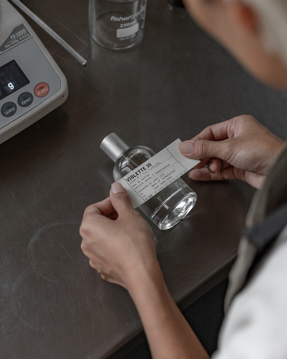 伝えたい想いを、23文字以内に込めて。ル ラボのフレグランスには、好きなメッセージや名前をいれてラベルをパーソナライゼーションすることができる。